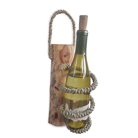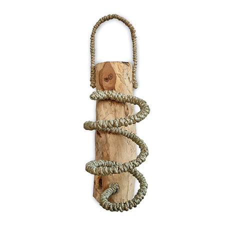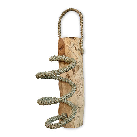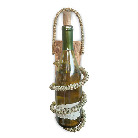 This fabulously unusual wine bottle holder features a solid teak root ‘trunk’ with a fixed, chunky rope spiral to hold a wine bottle. Standing and tilted versions also available.
