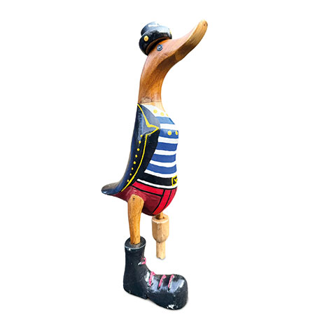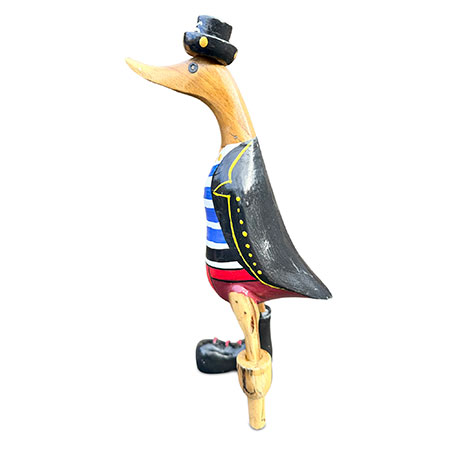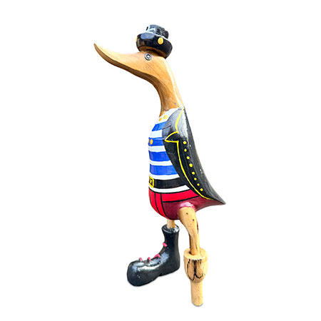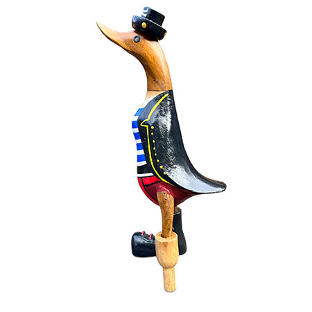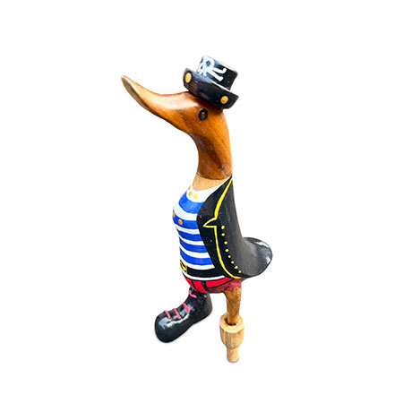 Shiver me timbers and heave-ho, me hearties, it’s pirate duck! Hand-carved from sustainable bamboo complete with peg leg, and hand-painted with a splendid pirate costume.