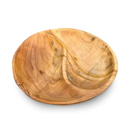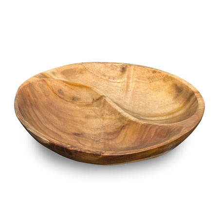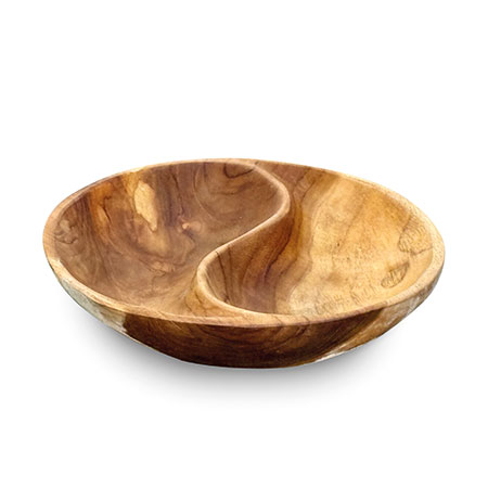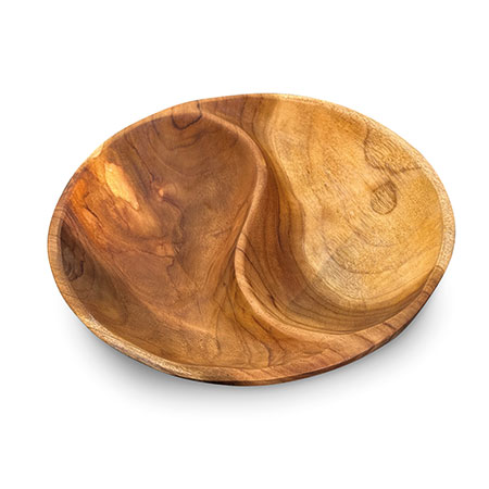 Gorgeously tactile 2 section bowl with a ying yang design. Hand-carved from teak root.