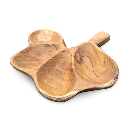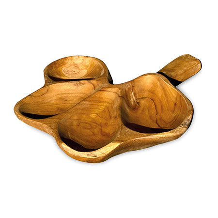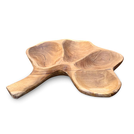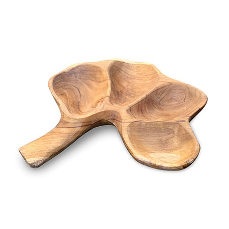 Get lucky with this 4 section bowl, hand-carved from teak root in a clover style with a ‘stalk’ handle.