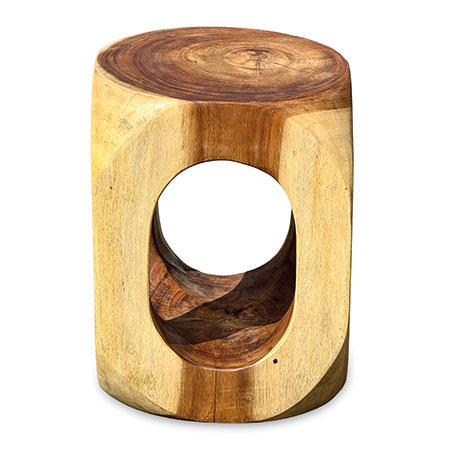 Attractive, versatile table with a rounded, olive-shaped hollow centre, hand-carved from suar wood.