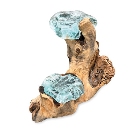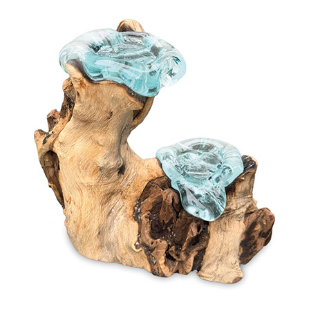 Introduce some functional artwork with our Glass Sculpture range. Each removable glass candle holder is hand-blown and cleverly moulded onto individually selected teak root pieces, as if the glass is melting into the wood, Dali-style!