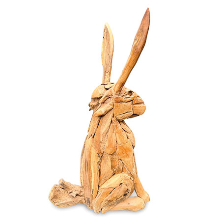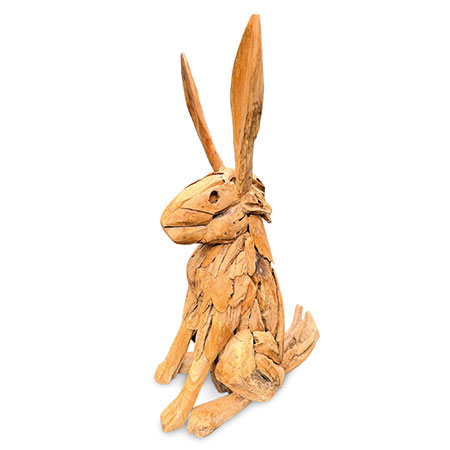 Our charming hare has been hand-carved and hand-sculpted from individual teak roots and would look fabulous in an indoor or outdoor setting. Each one of these sculptures has its own unique style and character.