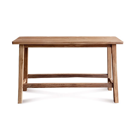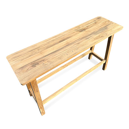 Made by repurposing upcycled and reclaimed wood from discarded teak boats and furniture, our unique hand-carved console is suitable for indoor or outdoor use.