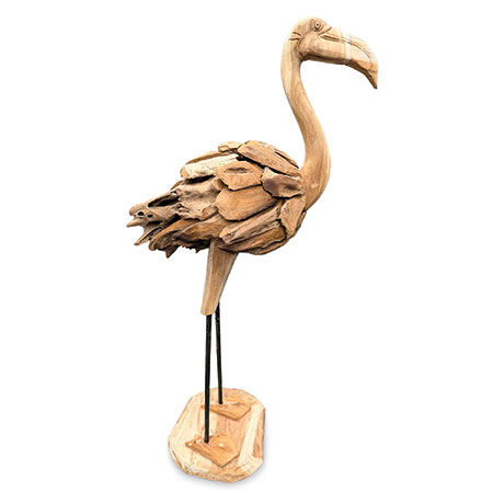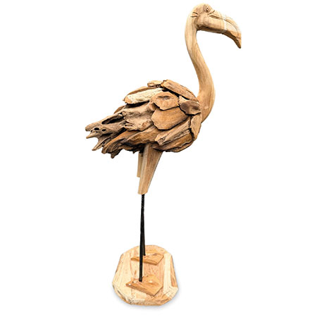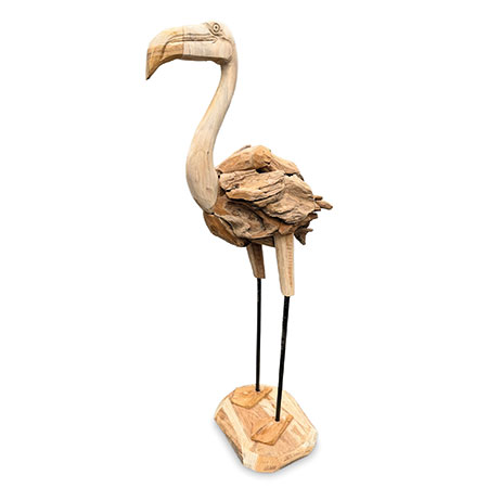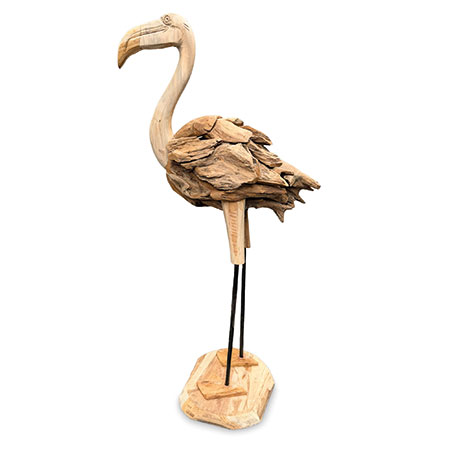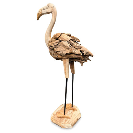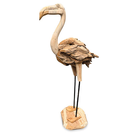 Our fabulous driftwood-style flamingo has been hand-carved and hand-sculpted from individual teak roots and is suitable for use inside or outside. Each one of these sculptures has its own unique style and character. Also available at H 60cm.