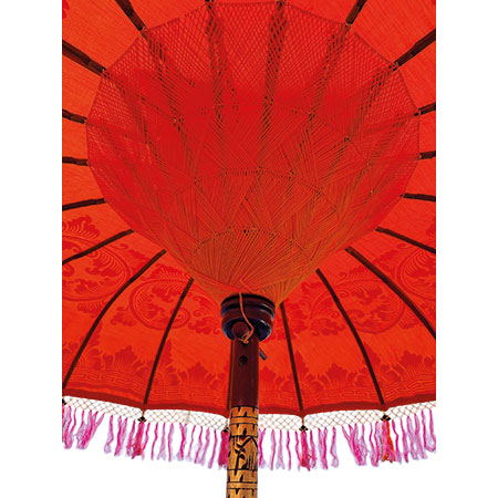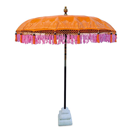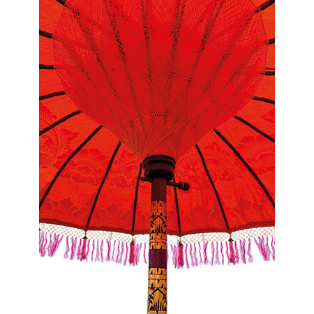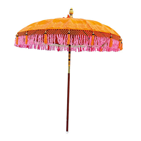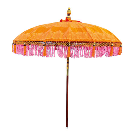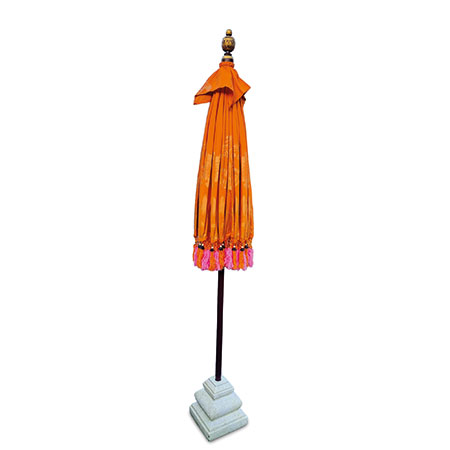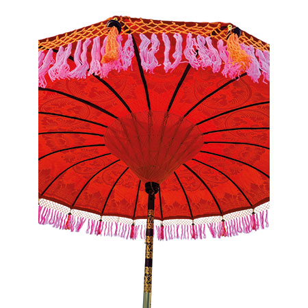 Beautiful hand-made Balinese Ceromonial Parasols - hand-carved, hand-printed, hand-woven and hand-painted by a small family business in Ubud, Bali.