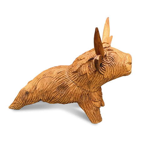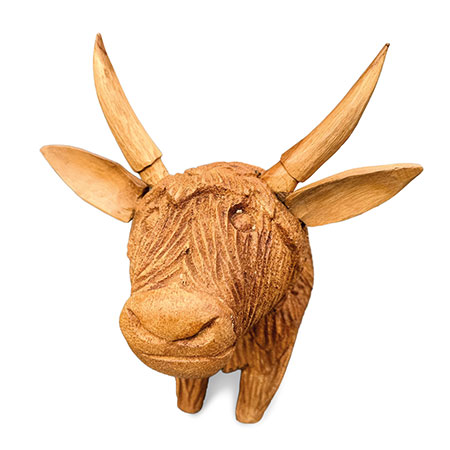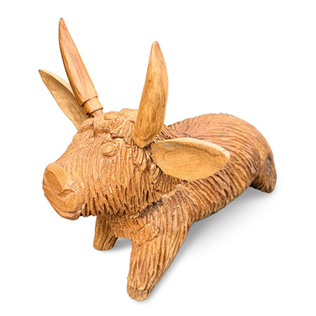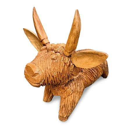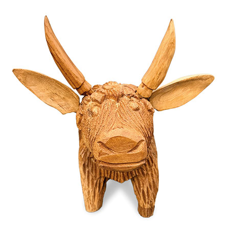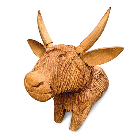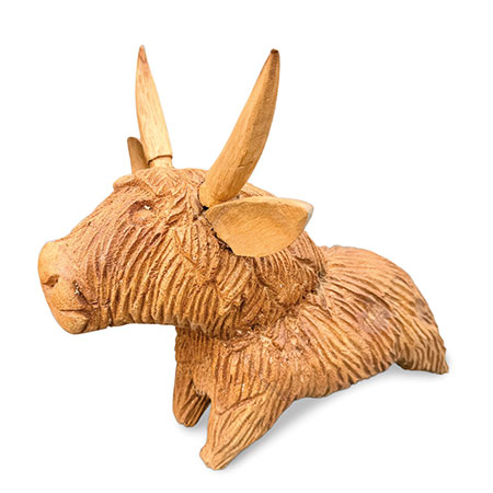 Meet Angus the Bull - hand-carved from sustainable wood with a detailed, shaggy coat. Moo-vellous!