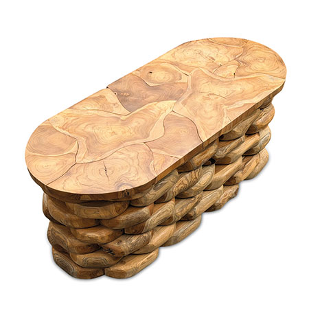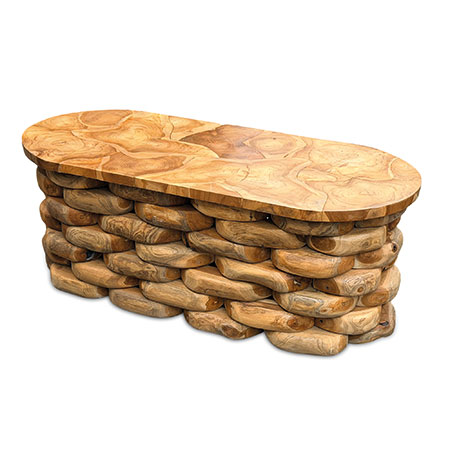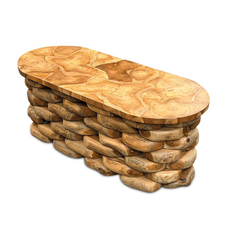 Our unique rootform range of furniture features individually hand-carved smooth teak root pieces layered to create a weave effect pattern, topped with a hand-carved slab of teak root. Strikingly original, versatile and wonderfully tactile.