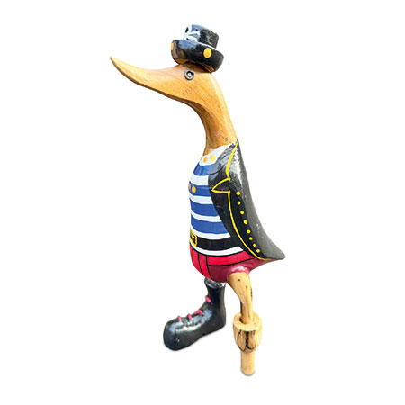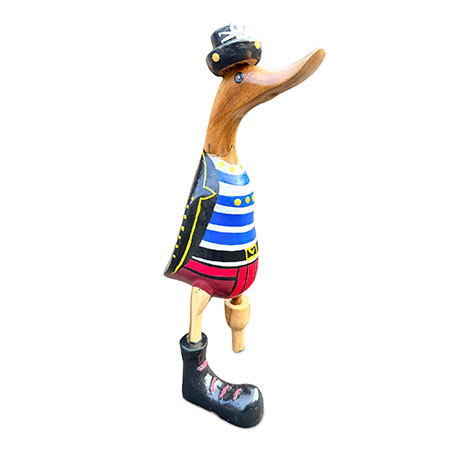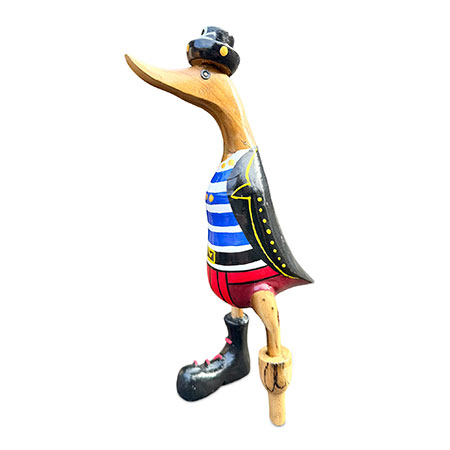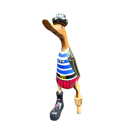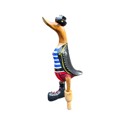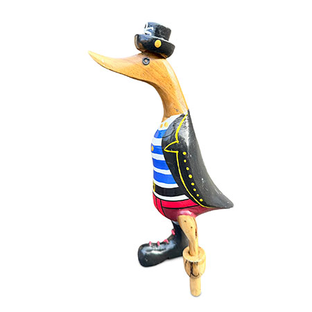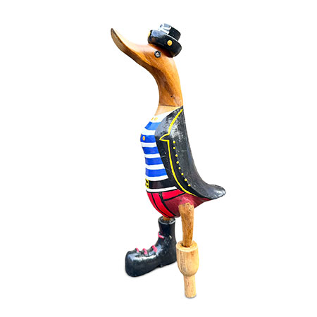 Shiver me timbers and heave-ho, me hearties, it’s pirate duck! Hand-carved from sustainable bamboo complete with peg leg, and hand-painted with a splendid pirate costume.