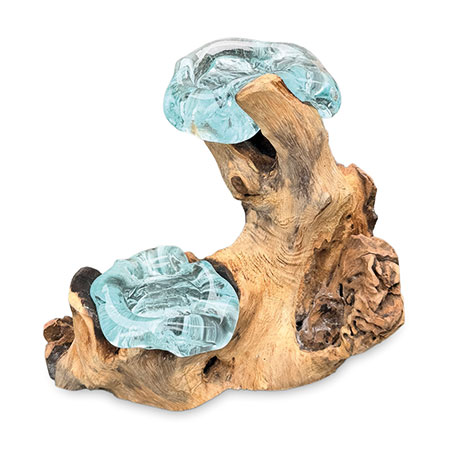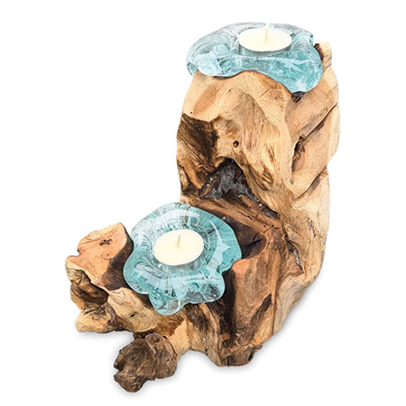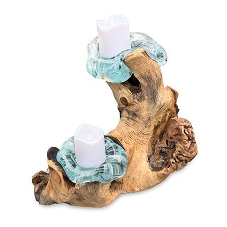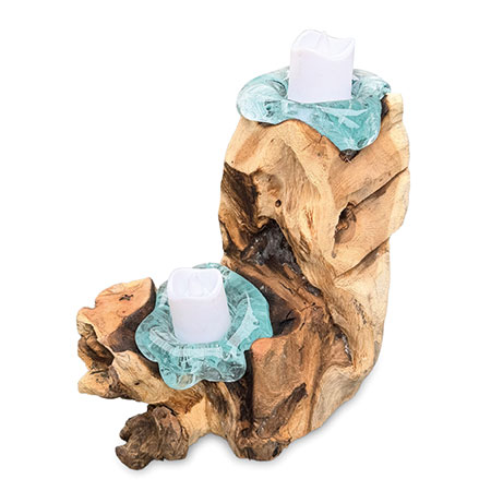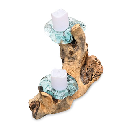 Introduce some functional artwork with our Glass Sculpture range. Each removable glass candle holder is hand-blown and cleverly moulded onto individually selected teak root pieces, as if the glass is melting into the wood, Dali-style!