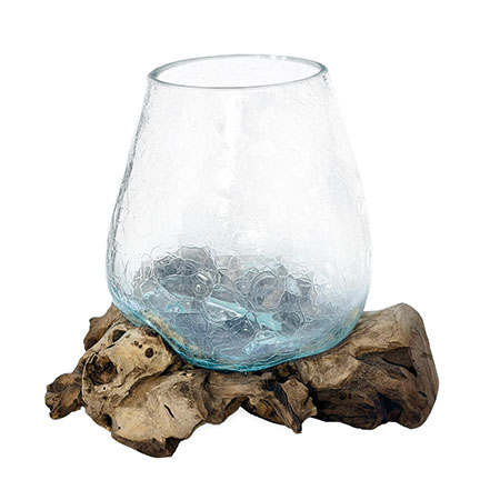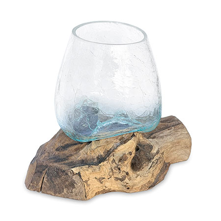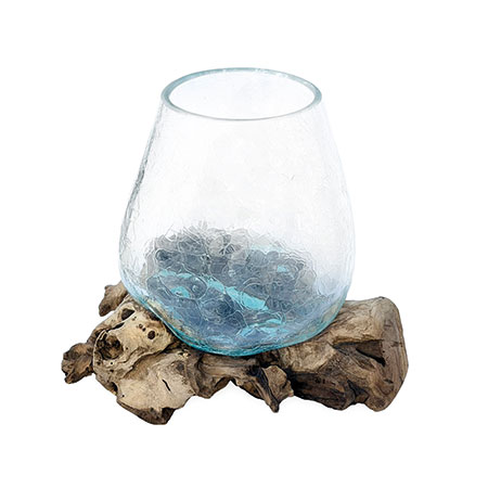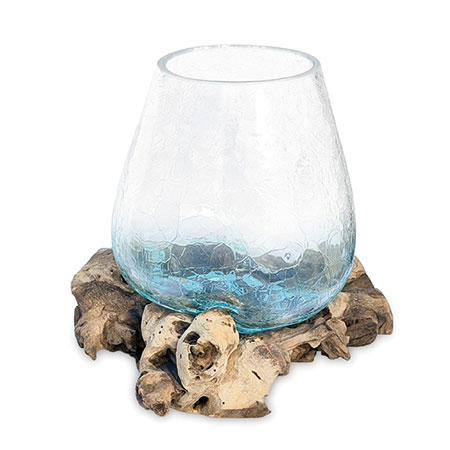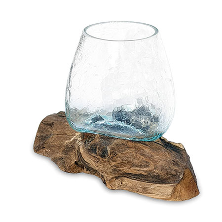 Introduce some functional artwork with our Glass Sculpture range. Each removeable glass bowl is hand-blown with an attractive crackle glass effect and cleverly moulded onto individually selected teak root pieces, as if the glass is melting into the wood, Dali-style!