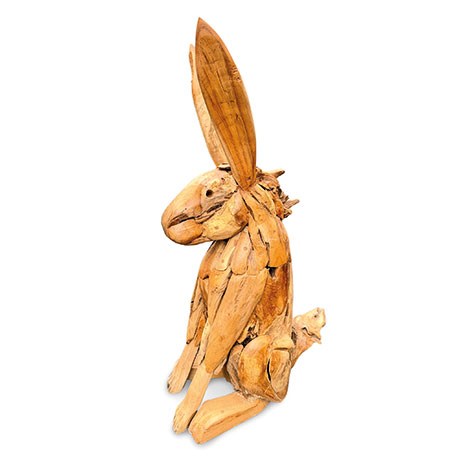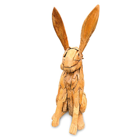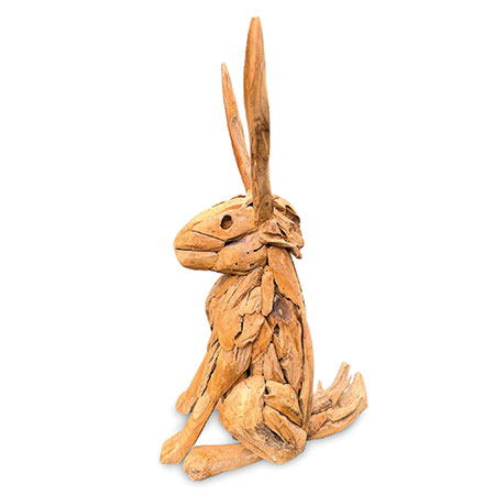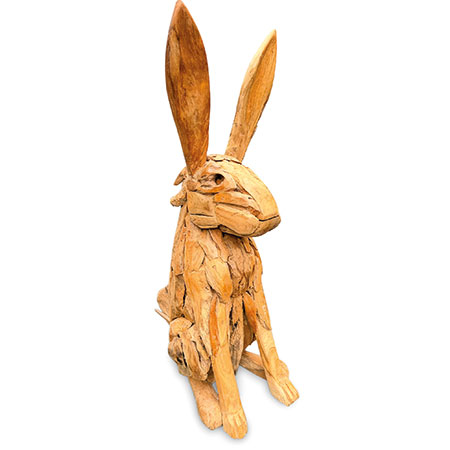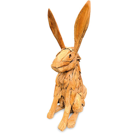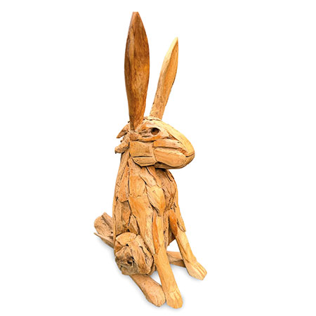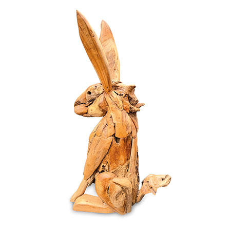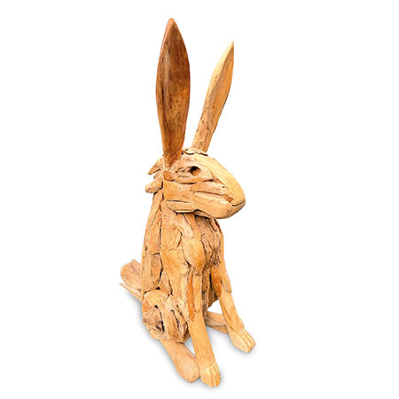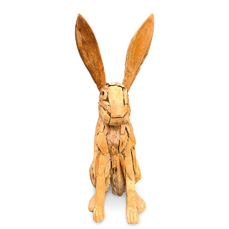 Our charming hare has been hand-carved and hand-sculpted from individual teak roots and would look fabulous in an indoor or outdoor setting. Each one of these sculptures has its own unique style and character.