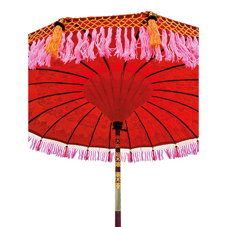 Beautiful hand-made Balinese Ceromonial Parasols - hand-carved, hand-printed, hand-woven and hand-painted by a small family business in Ubud, Bali.