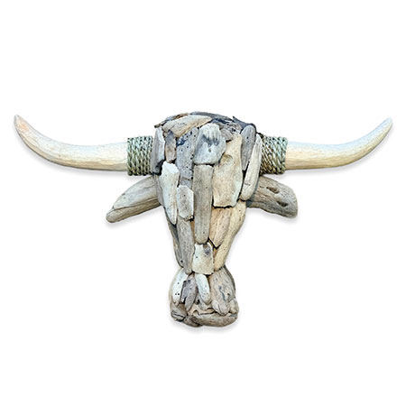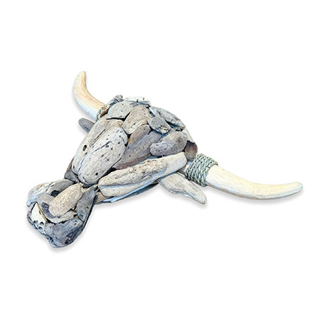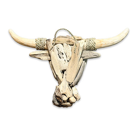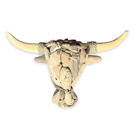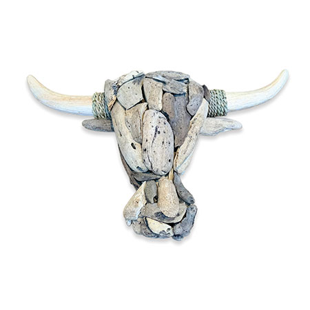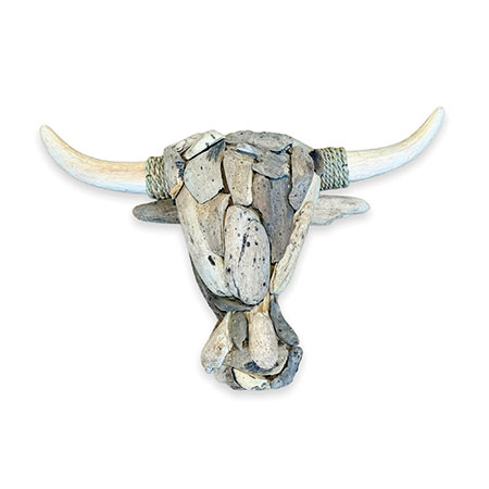 Our Wall Art range is a unique take on traditional framed artwork. This striking driftwood-style bull’s head has been hand-carved and hand-sculpted from individual teak roots with rope detail on the horns. Each one of these sculptures has its own unique style and character. Complete with hanging rope.