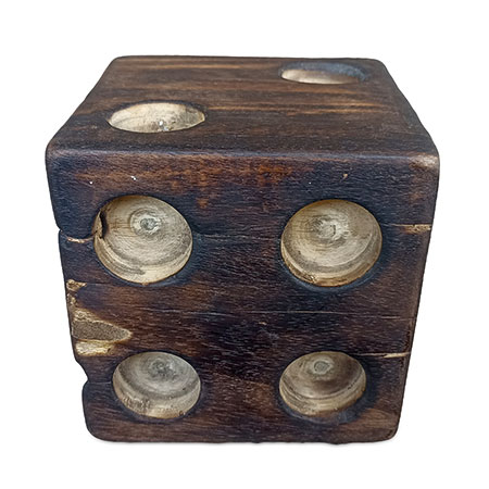 Big hand-carved wooden dice with tealight holes carved into the spots. Roll the dice to choose how many candles you’re going to have!