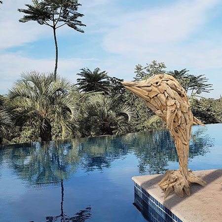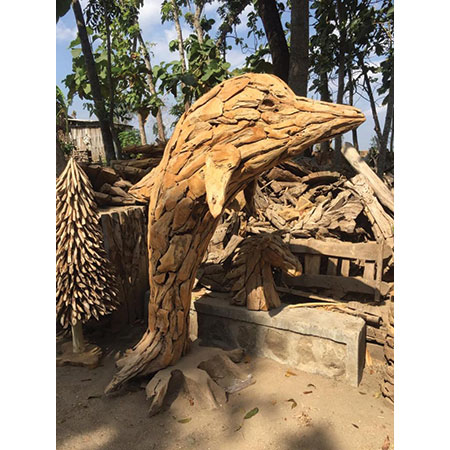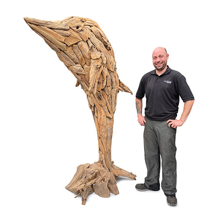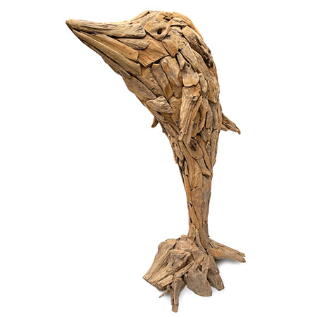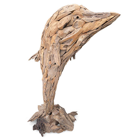 Our Driftwood Leaping Giant Dolphin sculpture is a spectacular sight at 200cm high and makes a real statement piece in any setting. Hand carved and sculpted from driftwood style teak roots, each one of these fabulous sculptures has their own unique style and character.